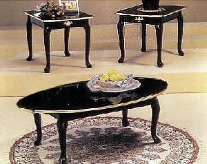 - 3 pcs Black finish coffee&end table set Queen Anne style